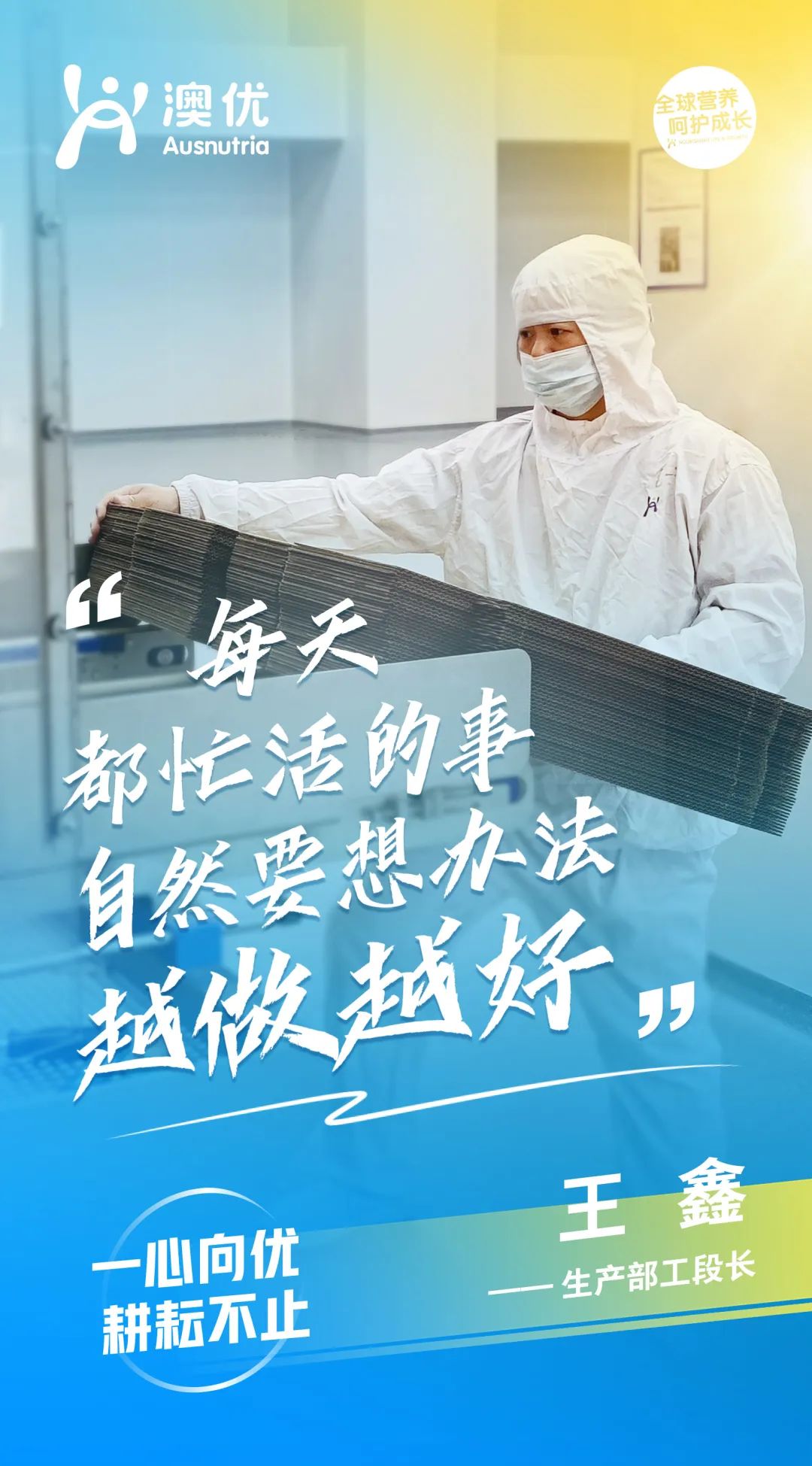 不仅要做得对,还要做得更好,是余环宇工作的写照,也是澳优人持续的追求。