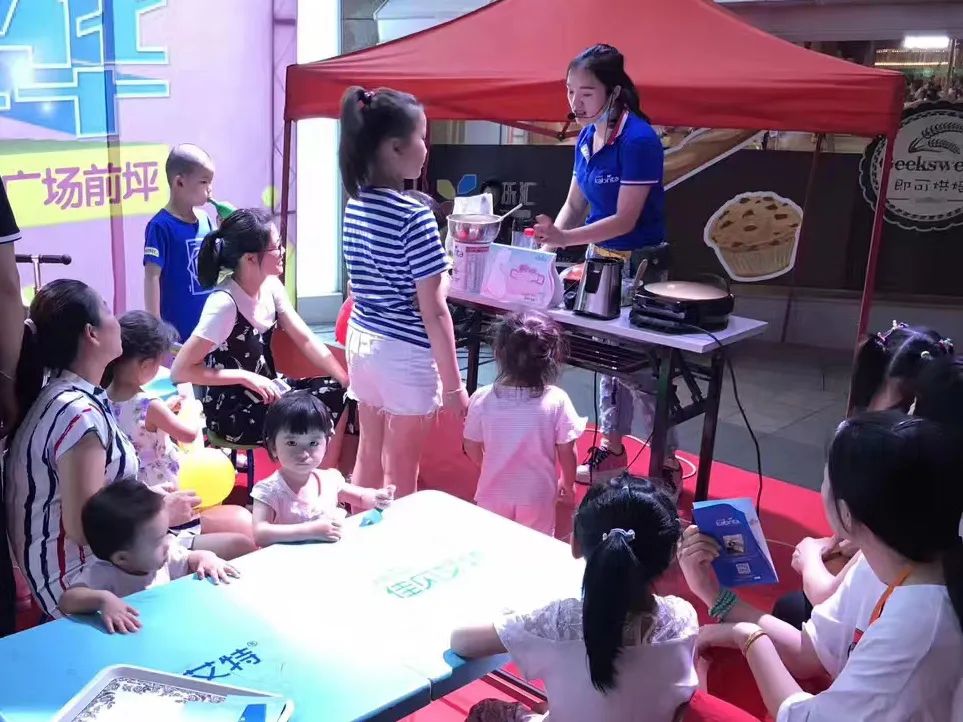 刘江回了她一张5年前的照片。那时,刘江刚入职,胡婷婷带着他去一家贝贝熊孕婴连锁店做活动。照片上,胡婷婷穿着佳贝艾特的蓝色T恤,戴着麦克风,在教一群小朋友烤蛋糕。