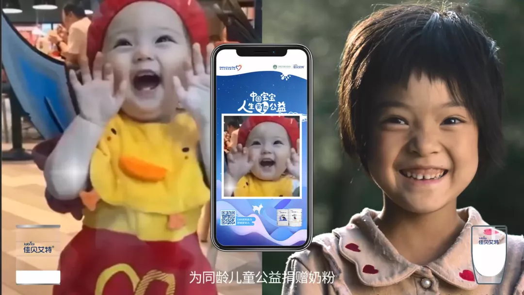 2020年,佳贝艾特又联合了中国社会福利基金会和人民日报,将持续了8年的“优爱行动”升级为“中国婴你更美”主题公益活动,并打造了“中国宝宝人生第一次公益”项目,以H5的形式征集宝宝笑脸,每征集一张笑脸,佳贝艾特就向中国社会福利基金会捐赠30g羊奶粉。