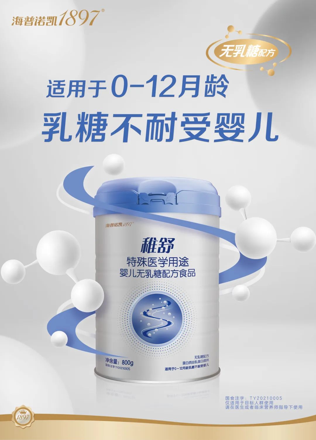 与庞大的市场需求相对的,是数量不多的特医婴配食品产品。据了解,“稚舒”特殊医学用途婴儿无乳糖配方食品于2021年4月通过国家市场监督管理总局特医食品注册,国食注字TY20210005,2022年1月获批湖南省首张特殊医学用途配方食品生产许可证,仅隔两月,海普诺凯1897首款特殊医学用途婴儿无乳糖配方食品“稚舒”重磅上市,实现了湖南省特殊医学用途配方食品“0”的突破。